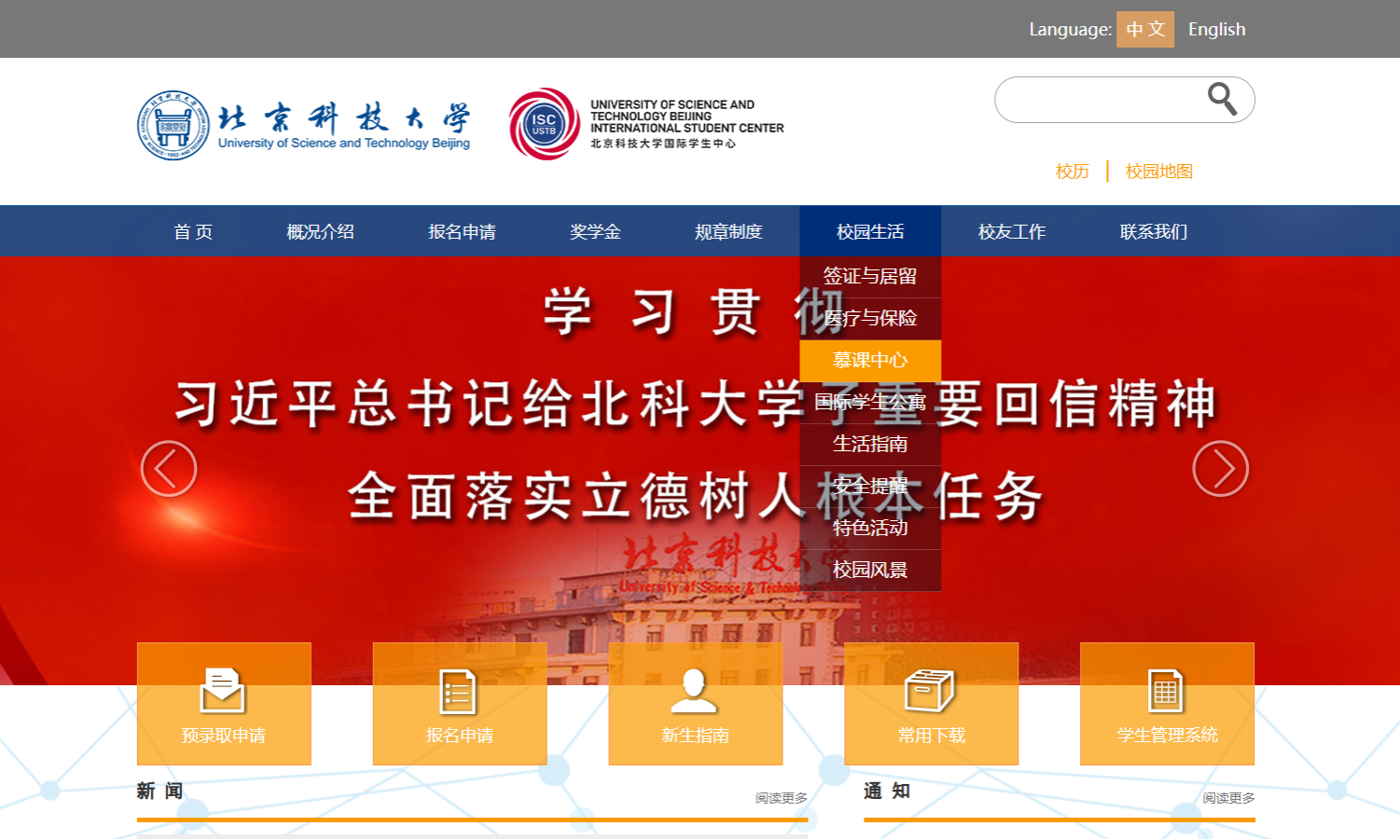 学习路径:海角社区 国际学生中心——>校园生活——>慕课中心