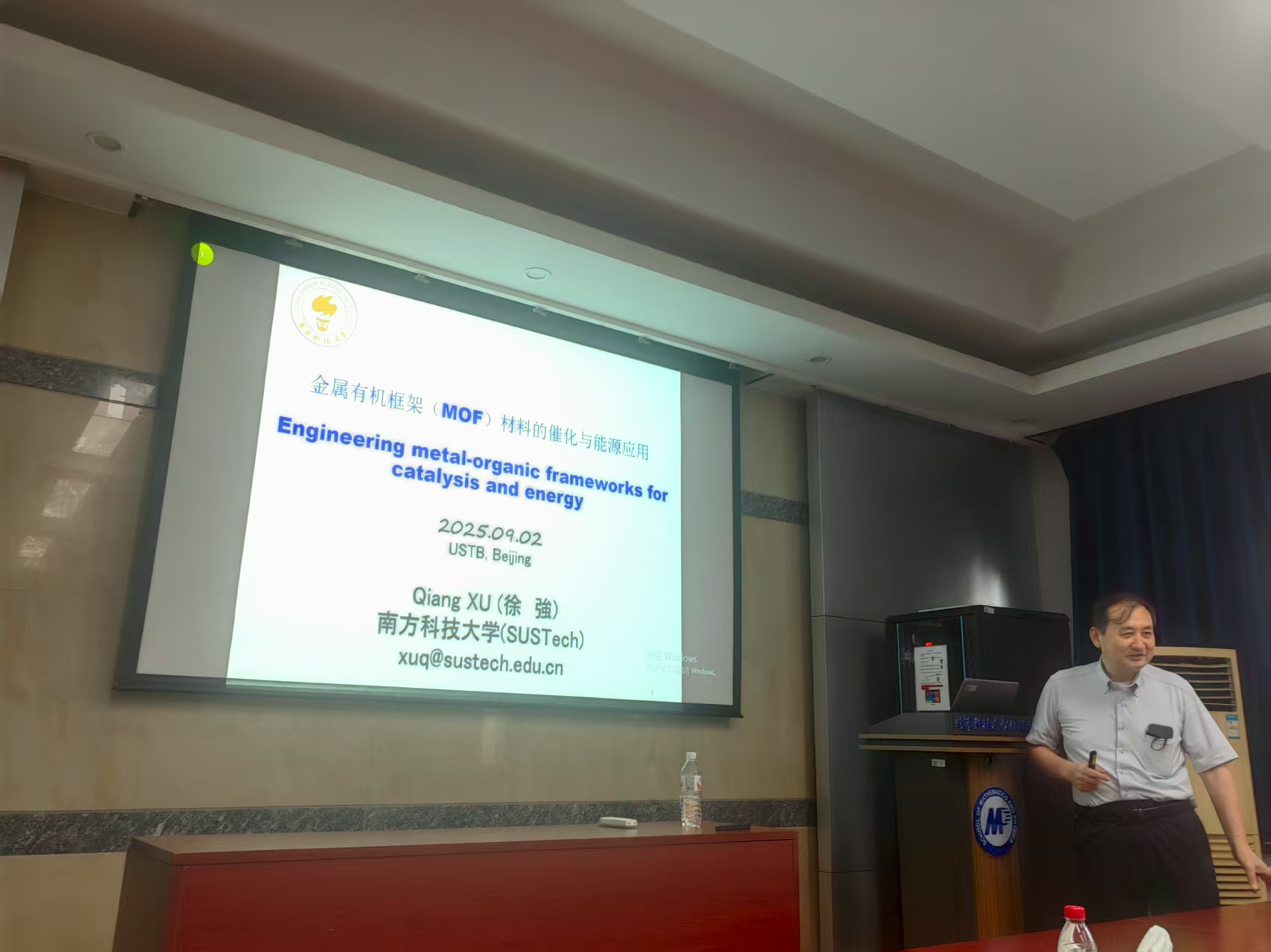 徐强教授以“金属有机框架(MOF)材料的催化与能源应用”为题为与会师生做学术报告。报告重点介绍了功能性MOFs复合纳米粒子、MOFs衍生材料和Quasi-MOFs的发展进程,并阐述了相关材料的制备、表征及应用,同时总结了该类材料的构效关系。报告中,徐强教授还重点讨论了MOFs材料在能源领域的应用潜力、近年前沿热点方向和科研工作细节,并分享了宝贵的科研经验。与会师生纷纷表示受益良多。