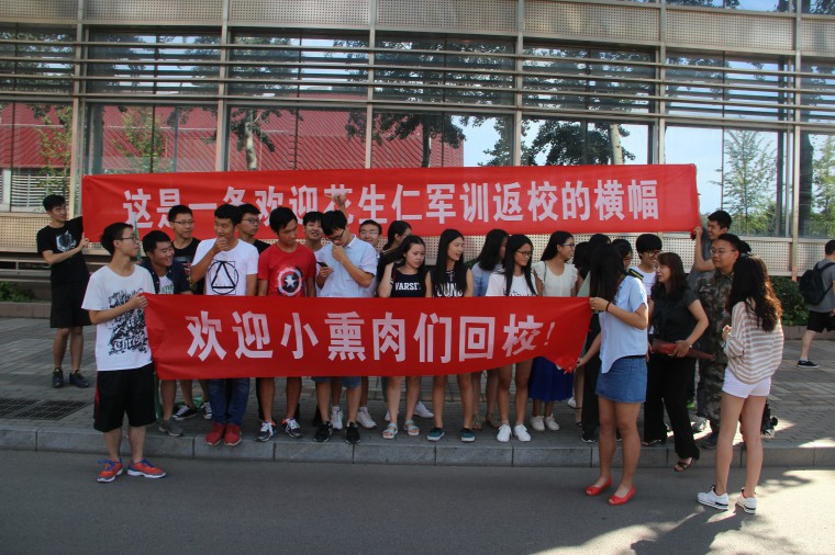 2016年9月10日,海角社区 副院长曹艳秋老师以及全体学生会成员迎接了军训归来的新生。
