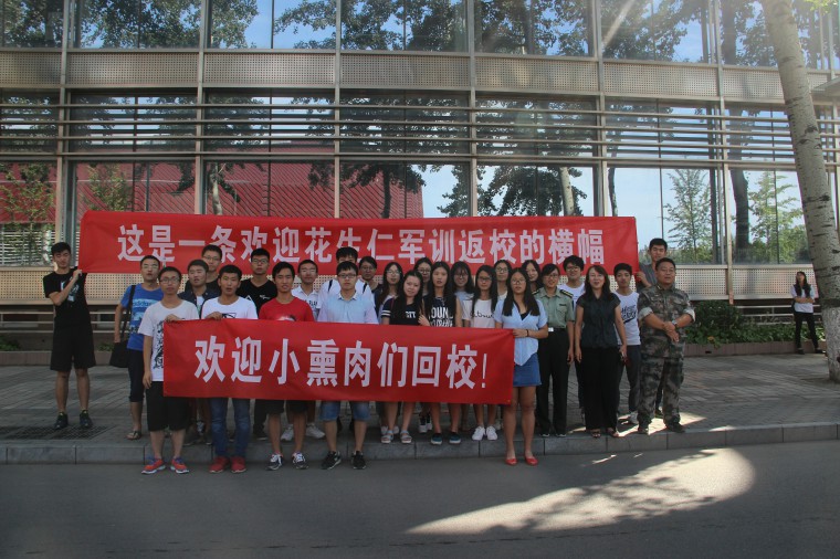 下午一点,迎接人员于万秀园门前集合,并准备了横幅标语等物品迎接新生们军训归来。下午1:32分,新生们进入海角社区 ,迎接人员同新生们互相问好,挥手致意。在新生们下车后,学生会成员主动帮助新生将行李运到宿舍。下午2点,迎接人员于万秀园前合影留念。