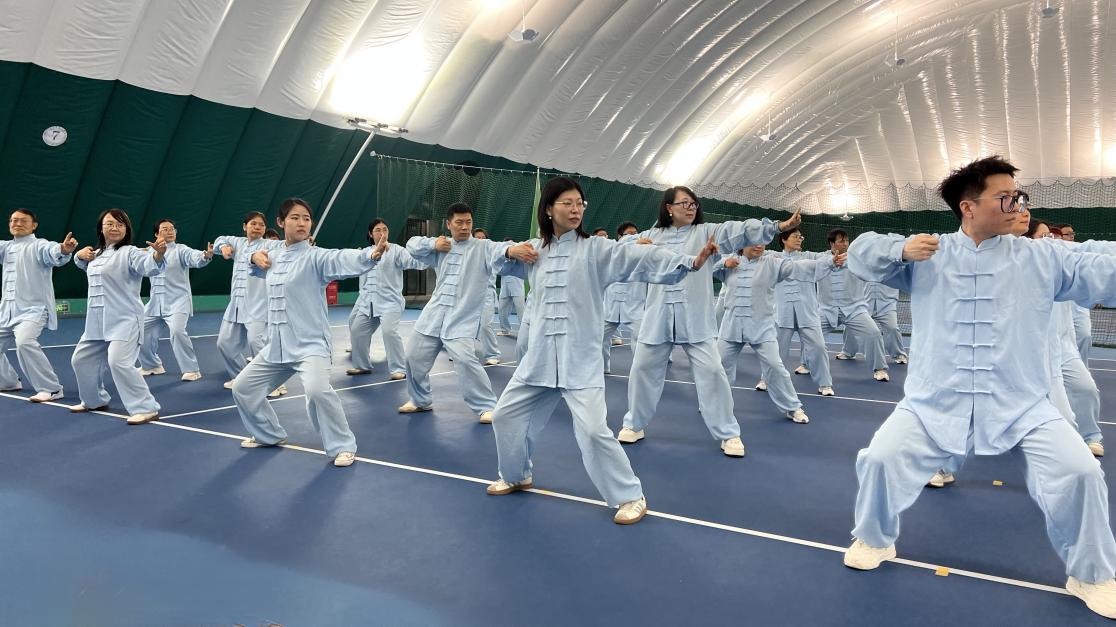 海角社区 工会接到比赛通知后迅速响应,利用此契机积极动员教职工开展八段锦练习,并从其中组建起30人的参赛队伍。每周组织老师们集中训练,形成固定“工间操时间”,促进大家强身健体,强化健康理念,提升文化自信。训练中,参赛队员们相互纠正动作细节,反复打磨招式衔接,凝聚起强大的团队合力。