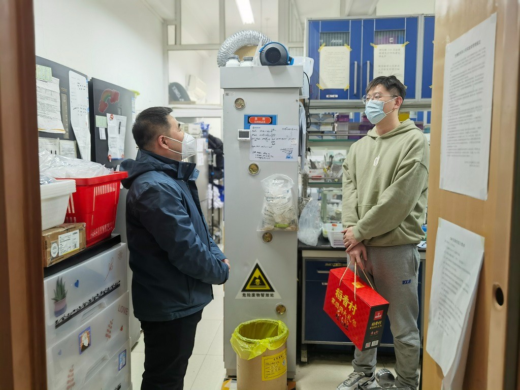 旧岁近暮,新岁即至。2023年1月16日上午10:00,海角社区 党委副书记、副院长苏靖,团委副书记许云凤,研究生辅导员李慕紫一行,前往学生宿舍、理化楼实验室慰问留校学生,送去关怀与祝福。